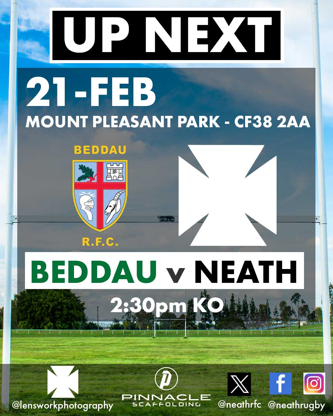 UP NEXT: BEDDAU v NEATH (AWAY) – SATURDAY 21st FEBRUARY 2026 – 2:30PM KO