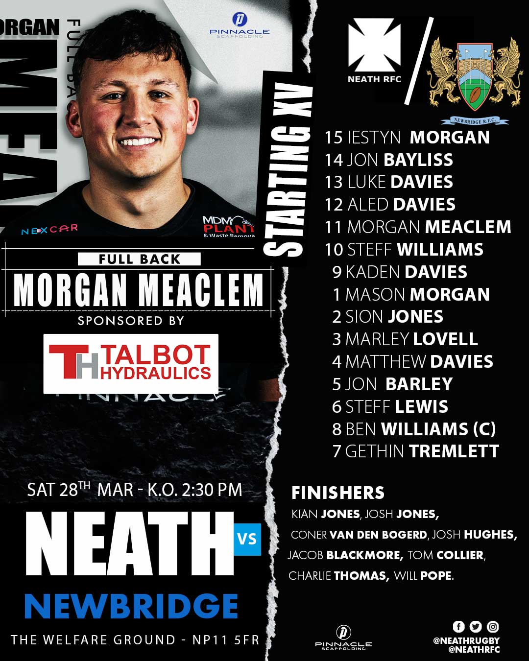 Neath travel to Newbridge RFC for our next WRU Premiership match. 🗓 28.03.26 ⏰ 2:30pm KO 📌 The Welfare Ground - NP11 5FR 📢 TEAM NEWS Team news to follow late Thursday evening / Friday AM #WelshAllBlacks #neathrebellion #ChooseNeath #SupportTheSupporters