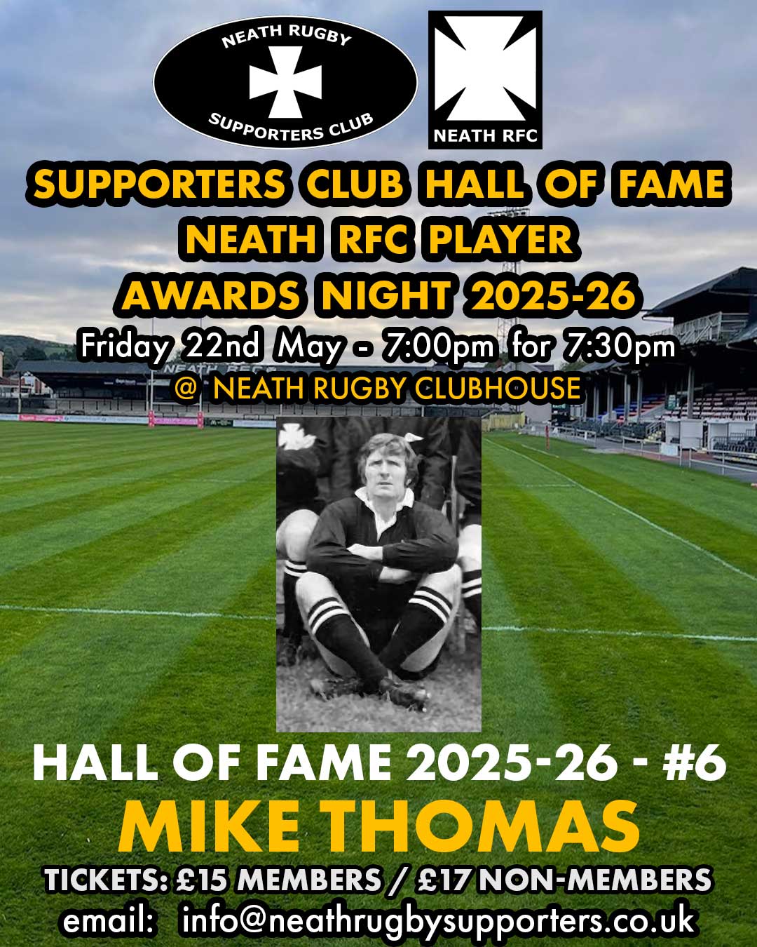 Neath Rugby Supporters' Club have revealed the names of six more heroes of yesteryear who will form this year's cohort of inductees into the Neath RFC “Hall of Fame”. INDUCTEE #6 – MIKE THOMAS Mike is a former flanker who joined Neath