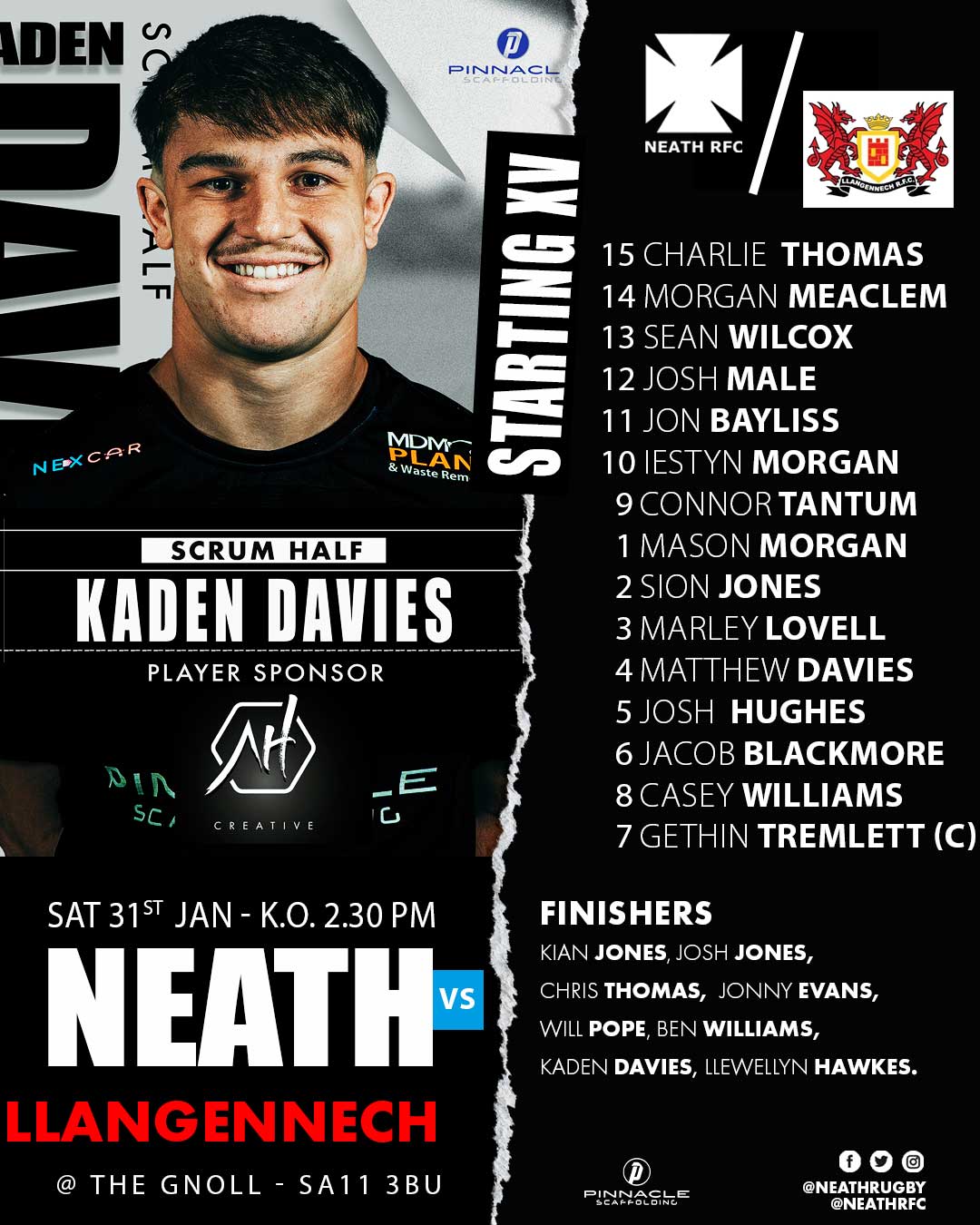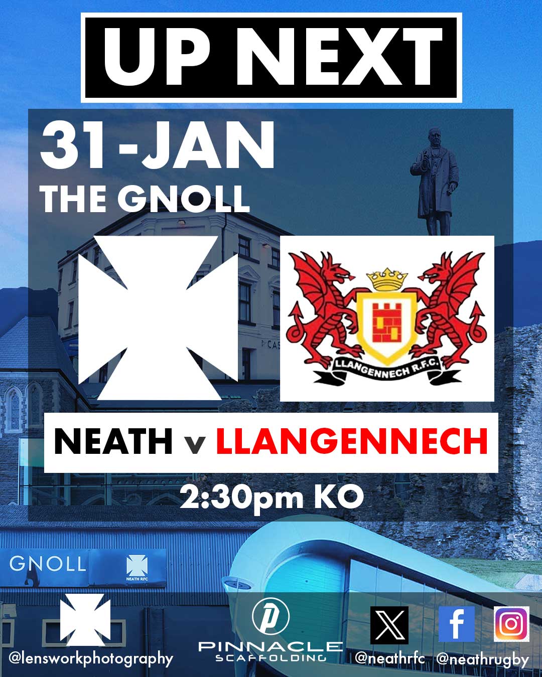 Neath RFC will be in action next on Saturday when Llangennech visit The Gnoll. 🗓 31.01.26 ⏰ 2.30 KO 📌 The Gnoll, SA11 3BU TICKETS 🎟 Secure yours online now: 🔗 https://neathrfc.com/tickets 🎟 Or purchase at the gate: - Adults: £10 - Under-16s: Free, when accompanied by paying