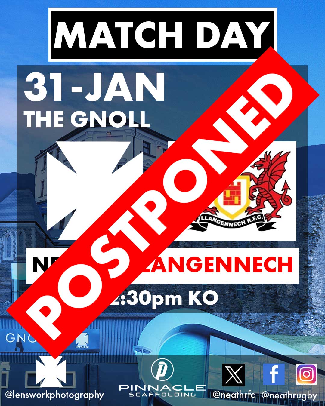 Unfortunately, today’s match versus Llangennech has been postponed following the recent heavy rain. #WelshAllBlacks #ChooseNeath #SupportTheSupporters