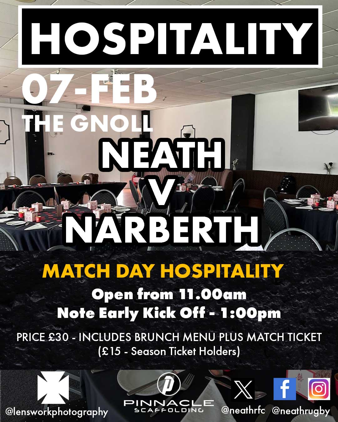 Neath RFC will be in action next on Saturday, when Narberth RFC visit The Gnoll. 🗓 07.02.2026 ⏰ 1:00pm KO (Note early kick off) 📌 The Gnoll, SA11 3BU TICKETS 🎟 Secure yours online now: 🔗 https://neathrfc.com/tickets/ 🎟 Or purchase at the gate: - Adults: £10 - Under-16s: Free, when