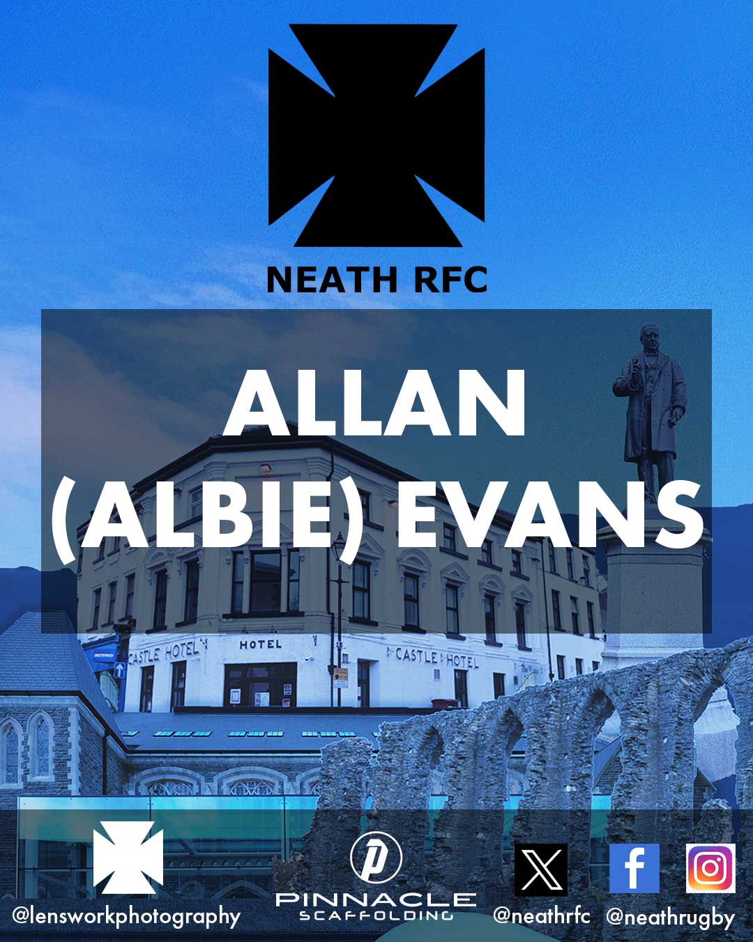 Neath RFC is sorry to learn of the passing of Allan 'Albie' Evans was well known as a former New Dock Stars and Llanelli Wanderers rugby player and played for Neath in 1969/70. In October he kicked two late penalties against
