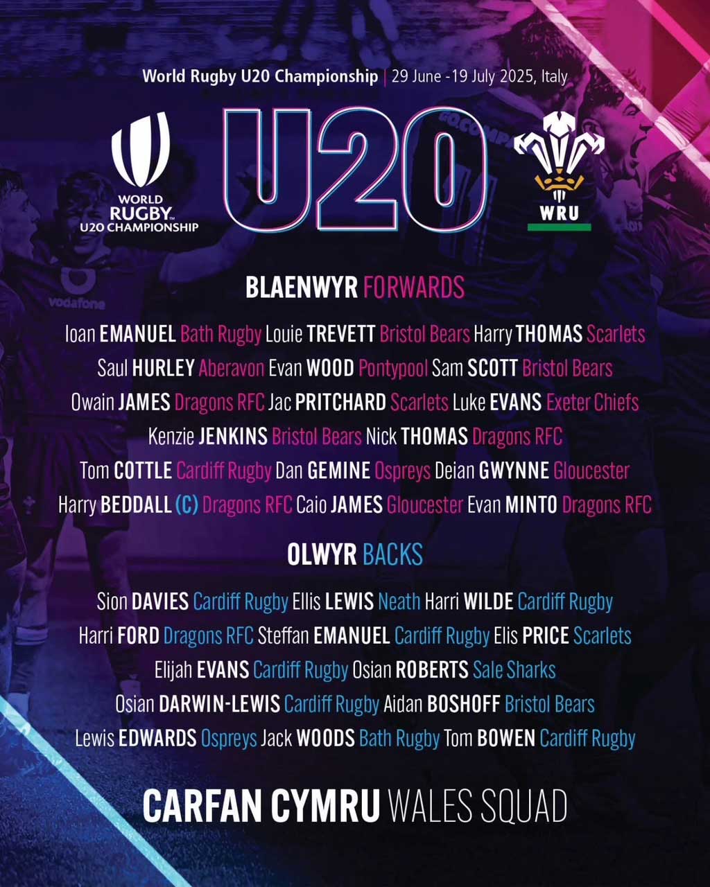 All at Neath RFC are delighted that scrum-half Ellis Lewis has been named in the Wales Under-20 squad to travel to the World Cup in Italy.