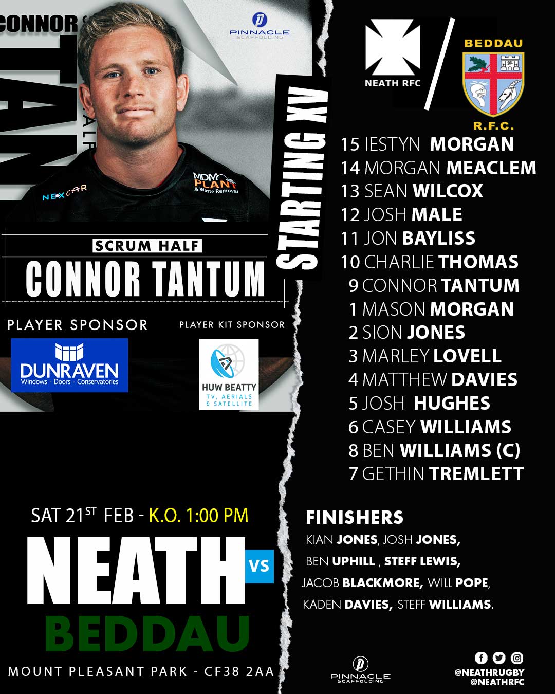TEAM NEWS & SUPPORTER INFORMATION: NEATH v BEDDAU (AWAY) – SATURDAY, FEBRUARY 21st, 2026 KICK OFF 1.00pm