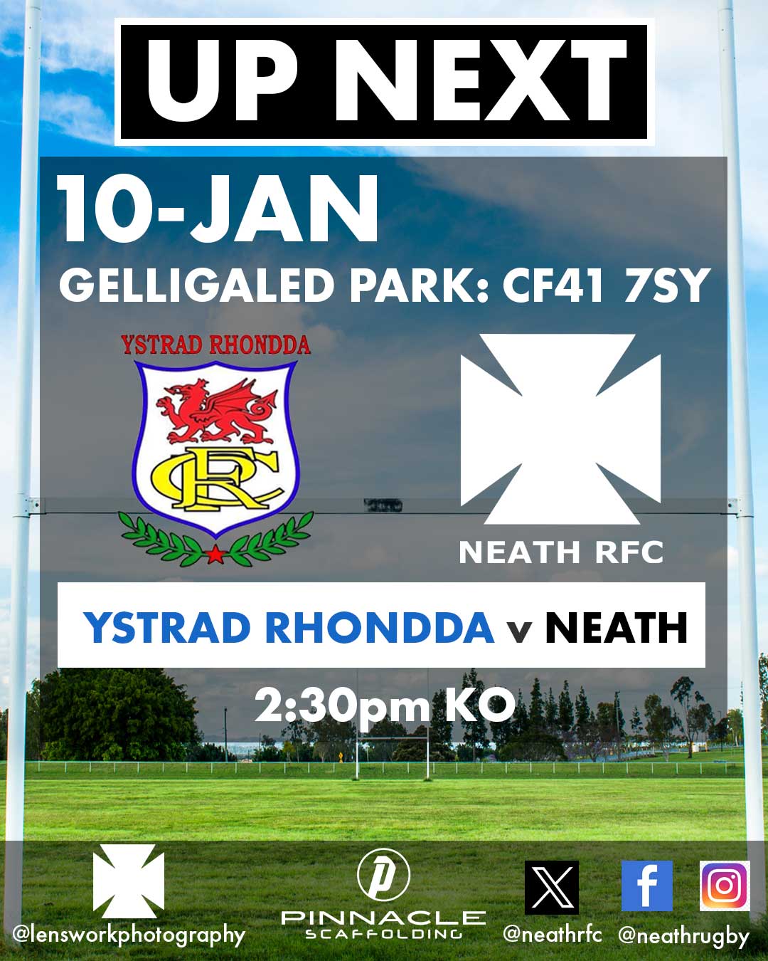 UP NEXT: YSTRAD RHONDDA v NEATH (away) – SATURDAY 10th January 2026 – 2:30pm KO