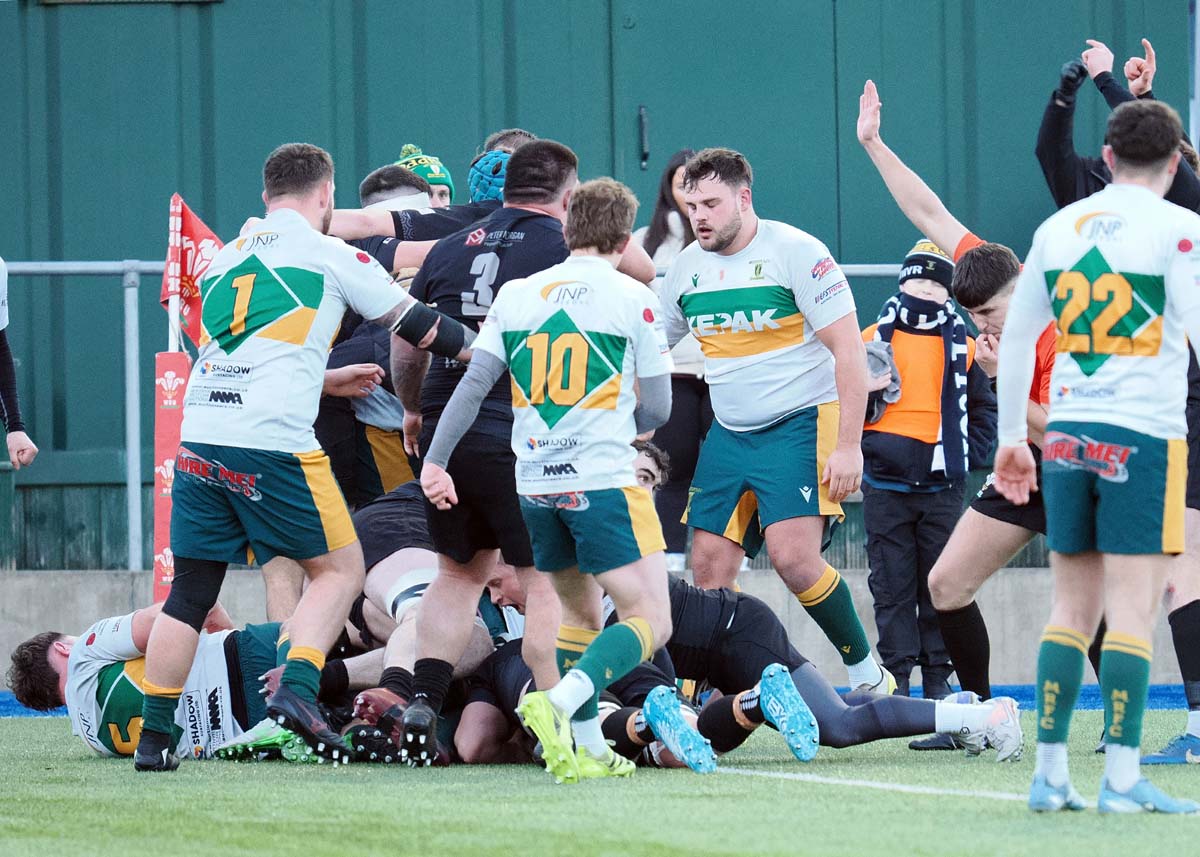But ten minutes later Merthyr levelled when flanker Jack Perkins touched down and outside-half Ben Jones converted before Jacob Blackmore’s line-out take, backed by more muscular forward work led to a try credited to co-lock Matthew Davies but likelier hooker Kian Jones and Paul Short converted again for 14-7.