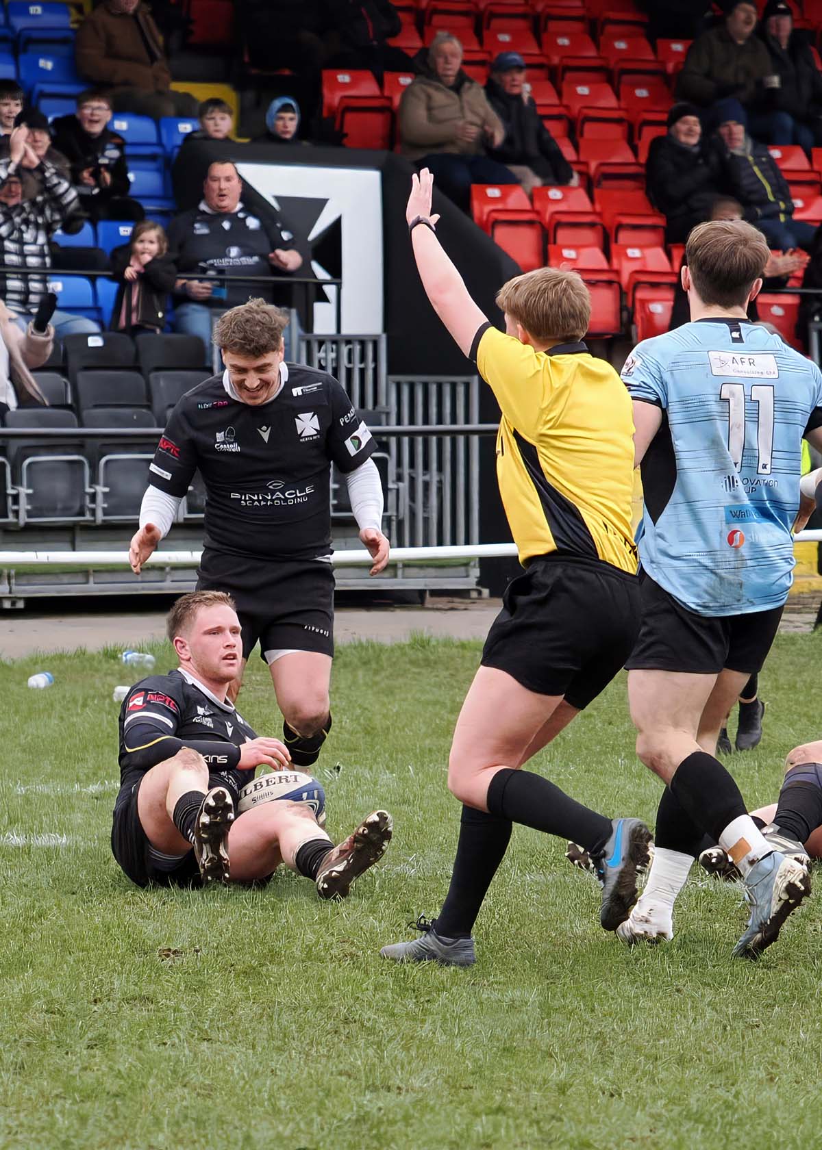 No.8 Mike Preece powered over from a scrum wide out, Rees converting, and the visitors bagged a second so suddenly Neath were down 14-19.