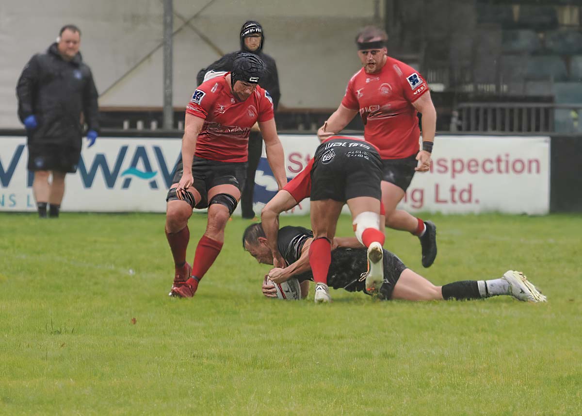 In the conditions, the home back row needed to be in the thick of things as were the visitors trio of Tom Mustoe, captain Gavin Ougard and Ollie Baycroft who were well backed up by John Jewell on a difficult day for scrum-halves.