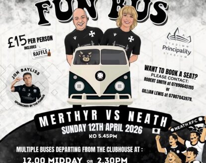 Would you like to hop on the FUN BUS to LLANELLI for our next premiership league game? π Date: April 4th 2026 β° 12.30PM from Neath Rugby Clubhouse (Kickoff: 2.30PM) πποΈ : Llanelli Wanderers RFC Stradey Park Avenue Llanelli Carmarthenshire SA15 3EF π The bus will depart from